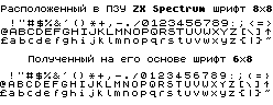 шрифт 8*8, находящийся в ПЗУ по адресам